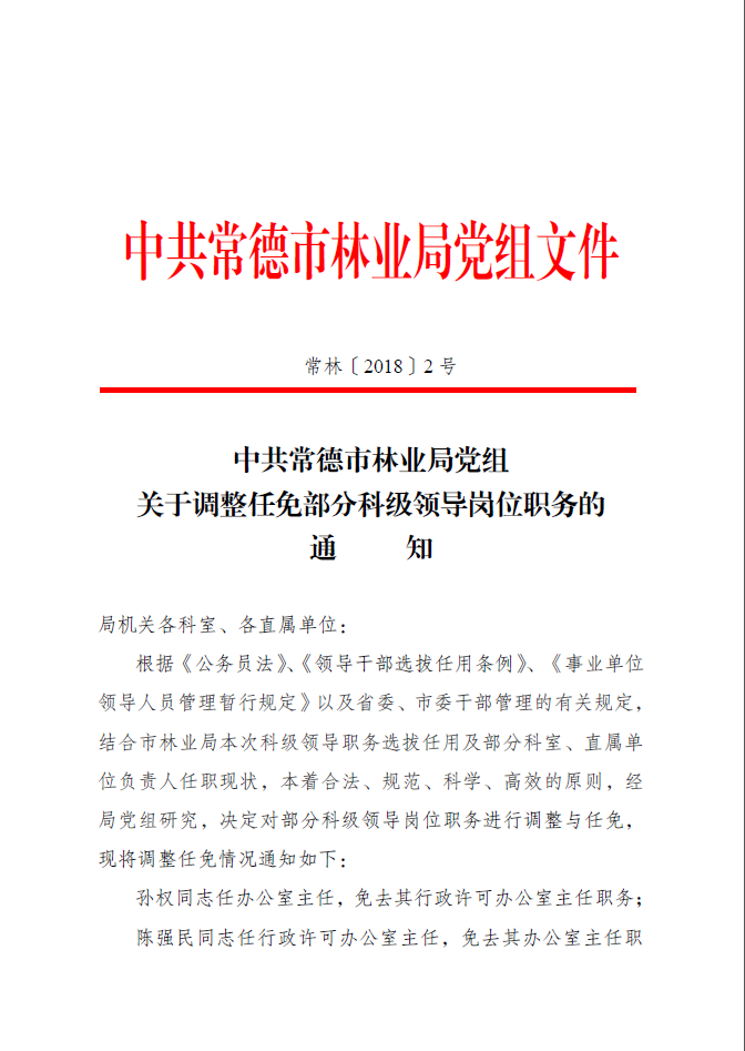 中共365-777.com党组关于调整任免部分科级领导岗位职务的通知